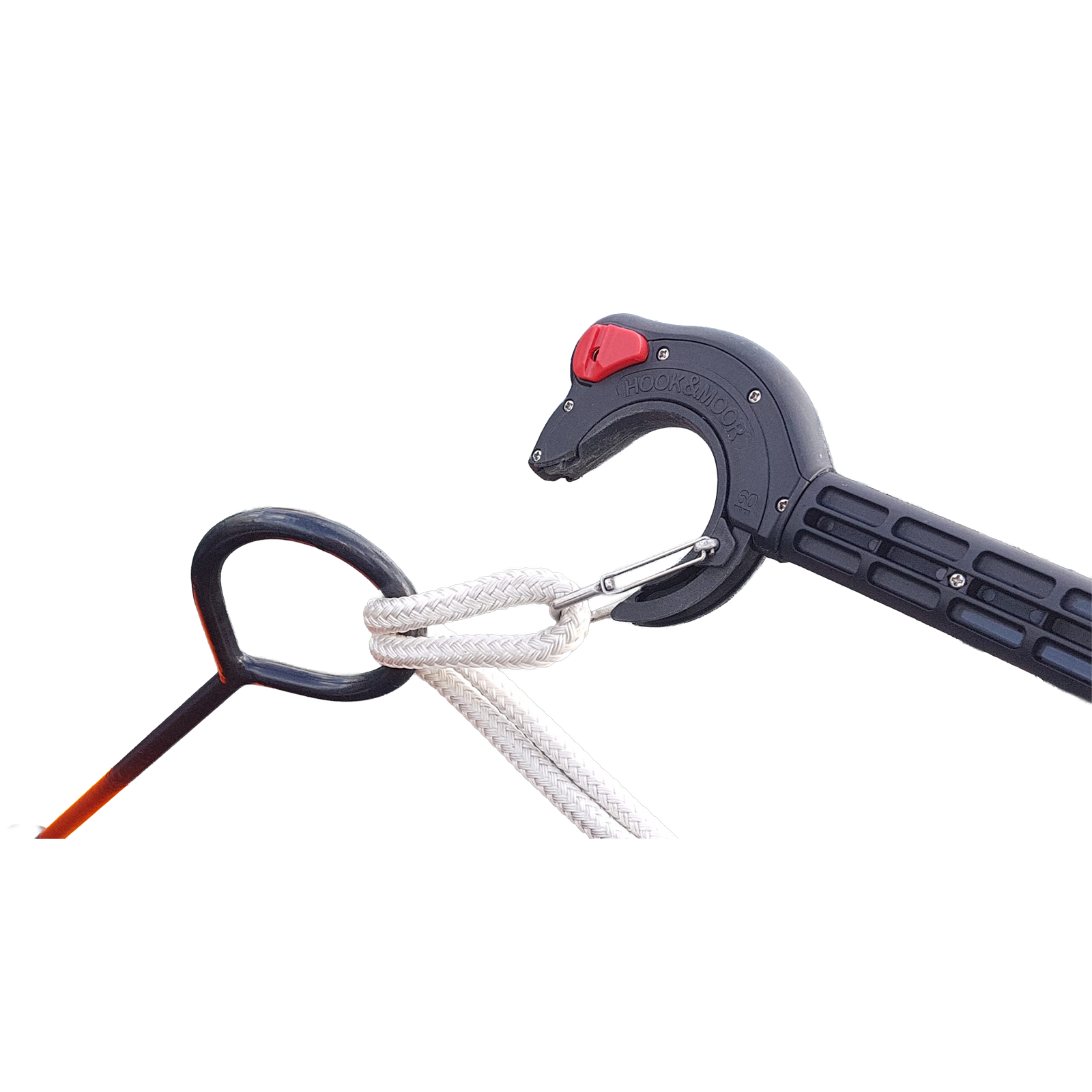 Hook & Moor is an advanced mooring tool that transforms the way sailors secure their vessels. Its innovative design allows you to thread your own mooring line directly through dock rings or cleats with a simple push or pull action, eliminating the need for guide or messenger lines. This enables a safe, one-step tie-up while keeping both ends of the line onboard for complete control.